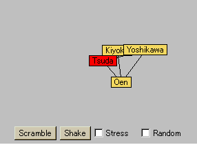 どうだろうか?「津田」を中心として、登場人物が蠢いているのがわかるだろう。適当に登場人物の位置をマウスで移動させてみると面白い。そして、互いの"Stress"を示してみると面白いと思う。
