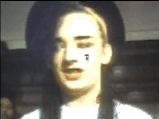 自分の視線をチェックした時に眺めていたのは、Culture Clubのビデオ画面。"Do You Really Want To Hurt Me?"を眺めているときの、自分の右目の注視点(眺めている場所)を調べてみたのだった(私の場合、左目もほぼ同じ場所だと思う)。例えば、こういった「注視点の変化を示した動画1、注視点の変化を示した動画2」である(画面中に小さな矩形で注視点の場所を示している)。