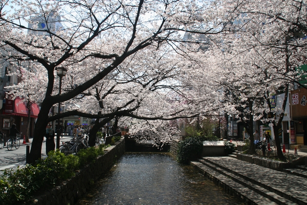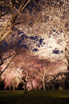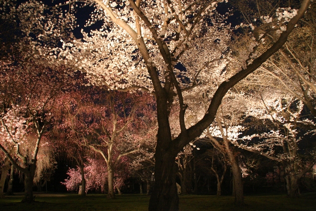 紅天女が出てきそうな風景だ。と、一瞬思うが「ガラスの仮面」の紅天女は梅の木だったことにしばらくして気づく。ほとんど全ての人が、デジタルカメラかカメラ付き携帯電話で夜桜を撮っている。携帯電話を両手で携えて桜に向かっている人たちは、まるで何かのお祈りをしているかのよう。